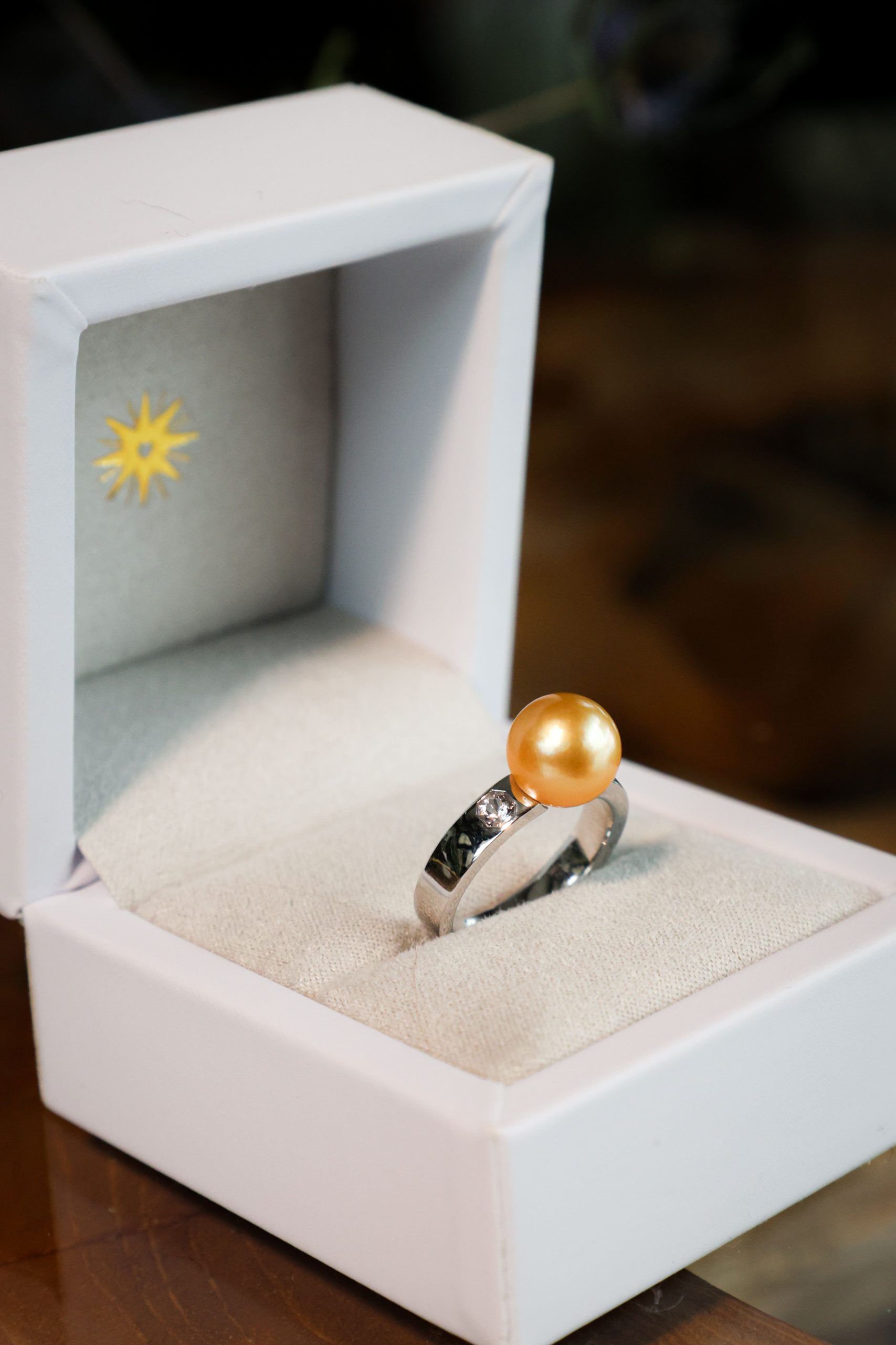 Perła o naturalnej złotej barwie (6,41 cts) z Morza Południowego — rzadki klejnot natury, powstały z cierpliwości i harmonii oceanu.