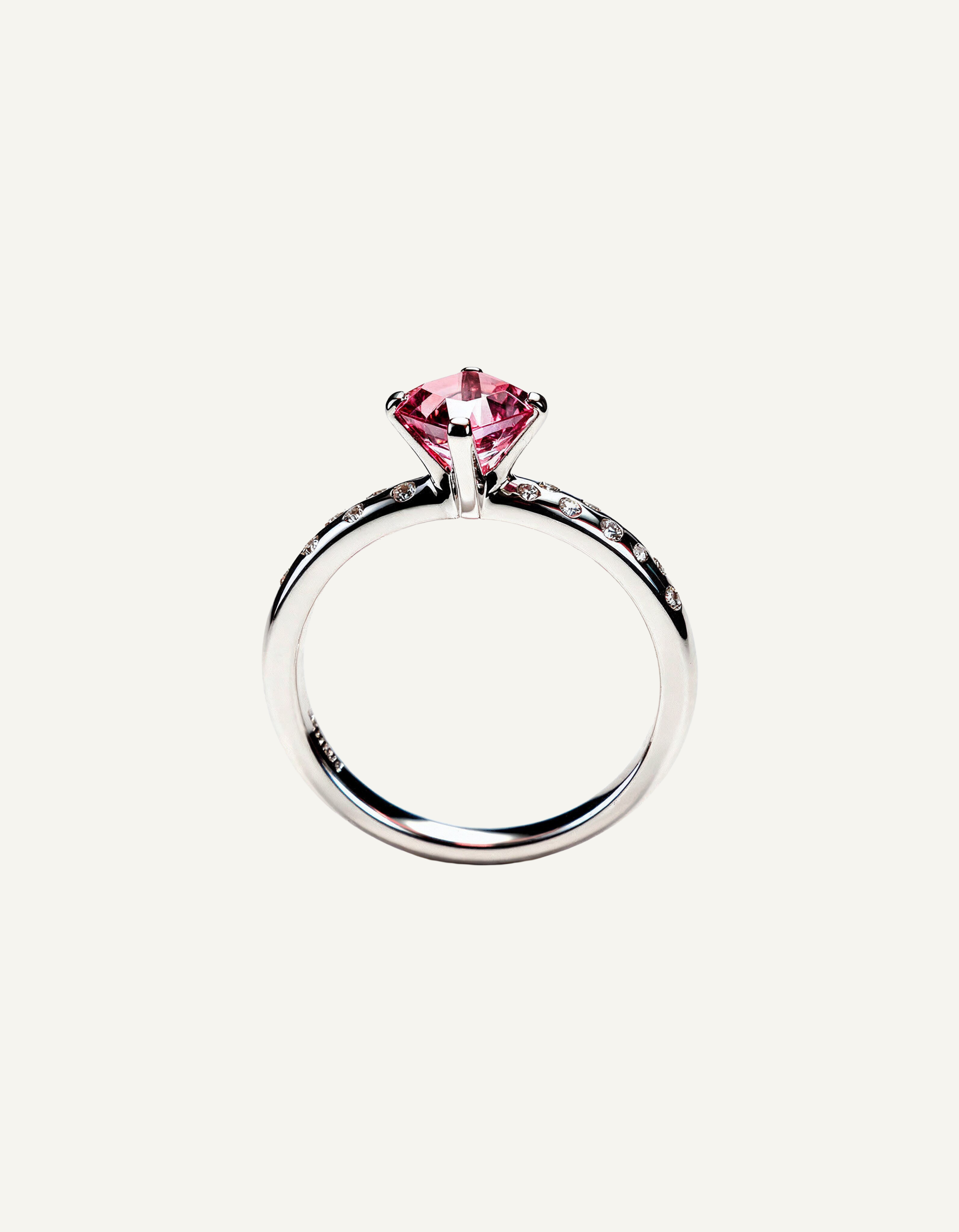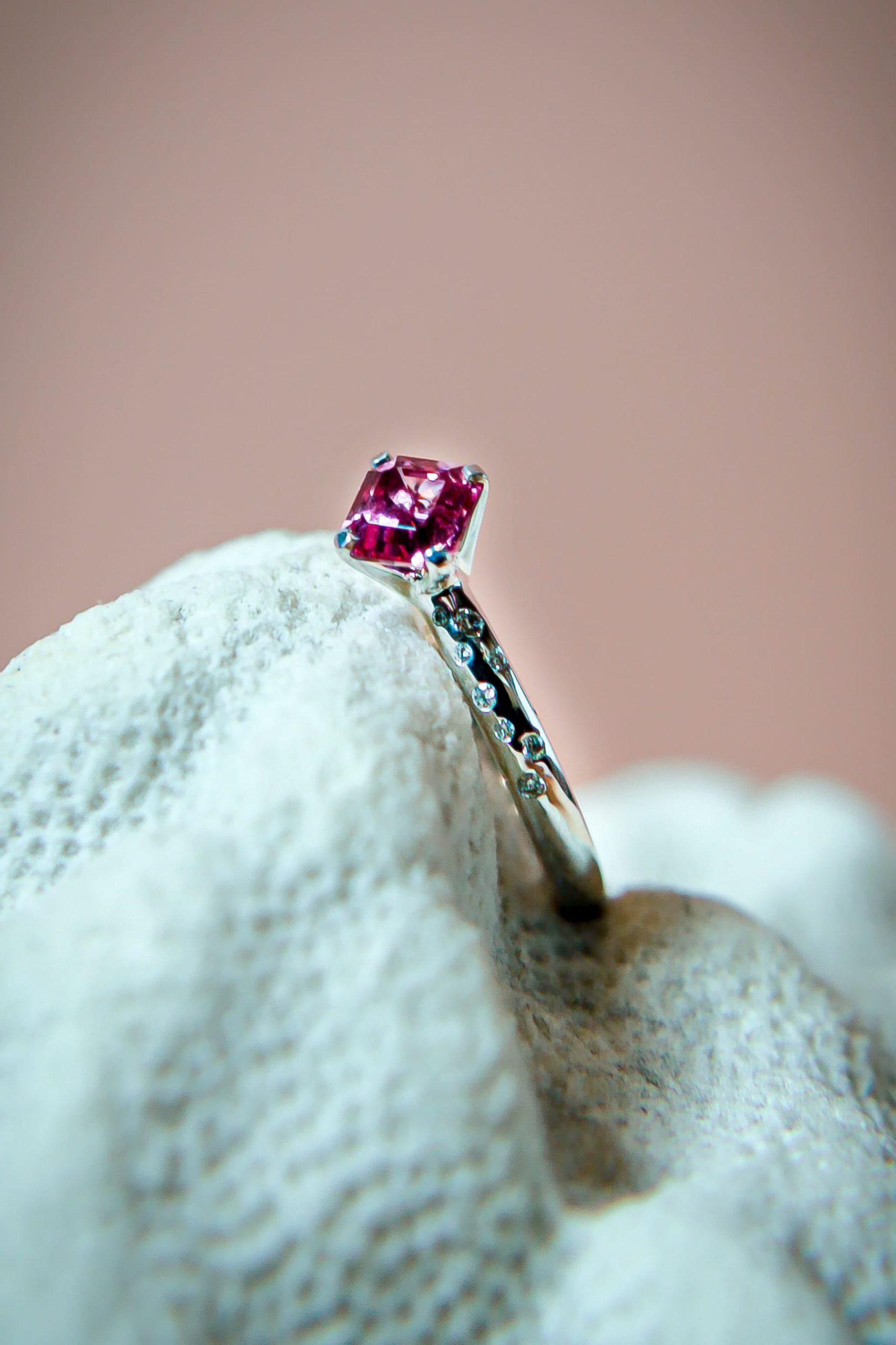Różowy spinel z Birmy, o masie 1,12 ct, w jednym z najbardziej fascynujących szlifów — Asscher.